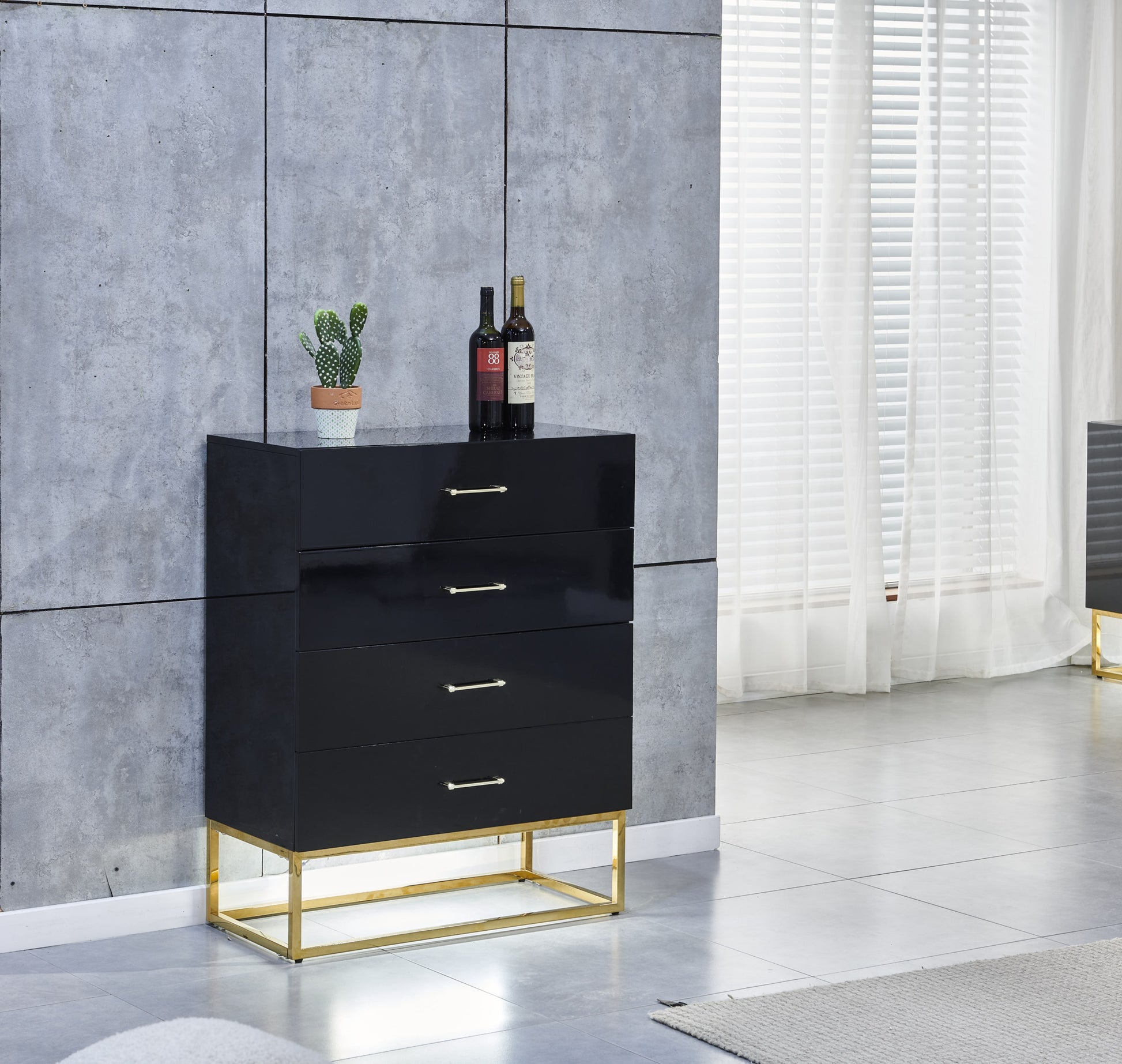 Commode Alya laquée avec finitions dorées – Élégance moderne et raffinement