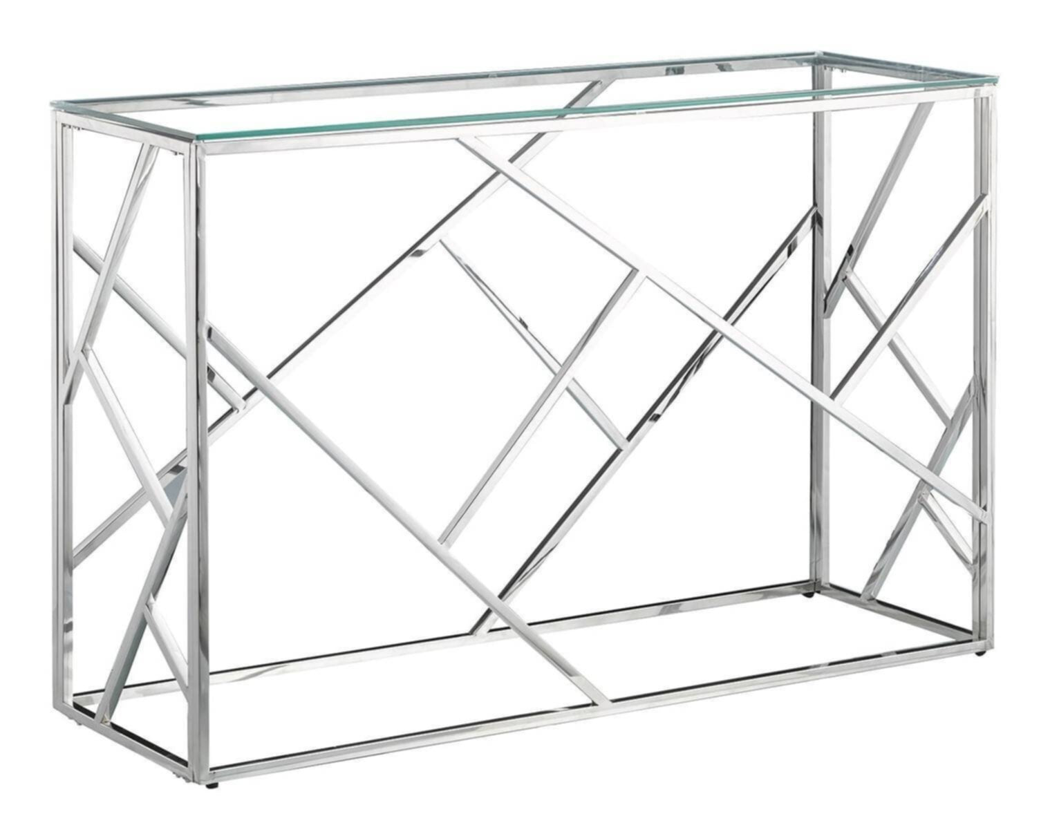 Console Geomag en Chrome avec Plateau Verre Transparent – 120x40x78 cm