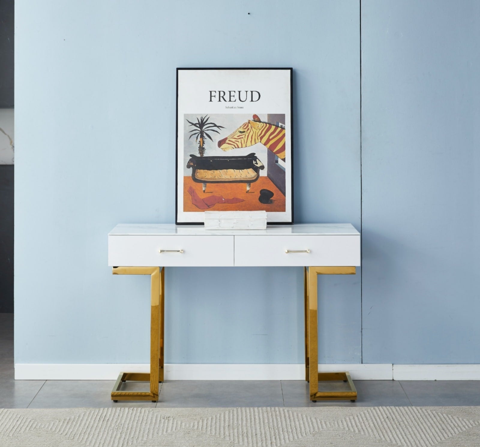 La console Lila séduit par son design raffiné et ses pieds dorés élégants. Elle apporte une touche luxueuse et contemporaine à votre intérieur, idéale pour une entrée, un salon ou un couloir. Fonctionnelle et décorative, cette console combine style et praticité pour mettre en valeur vos objets et sublimer votre décoration.