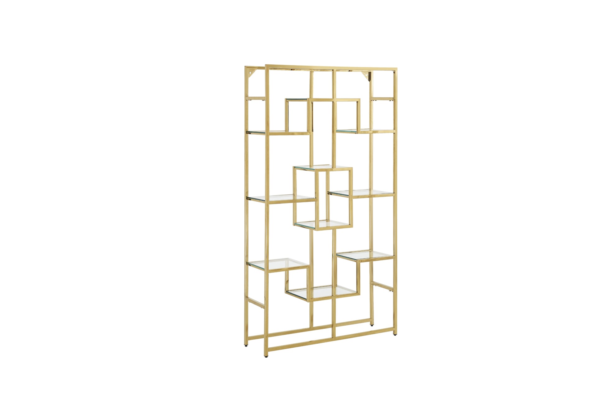 Étagère Richmont – Pieds Gold & Plateaux Transparants 100x30x180 cm