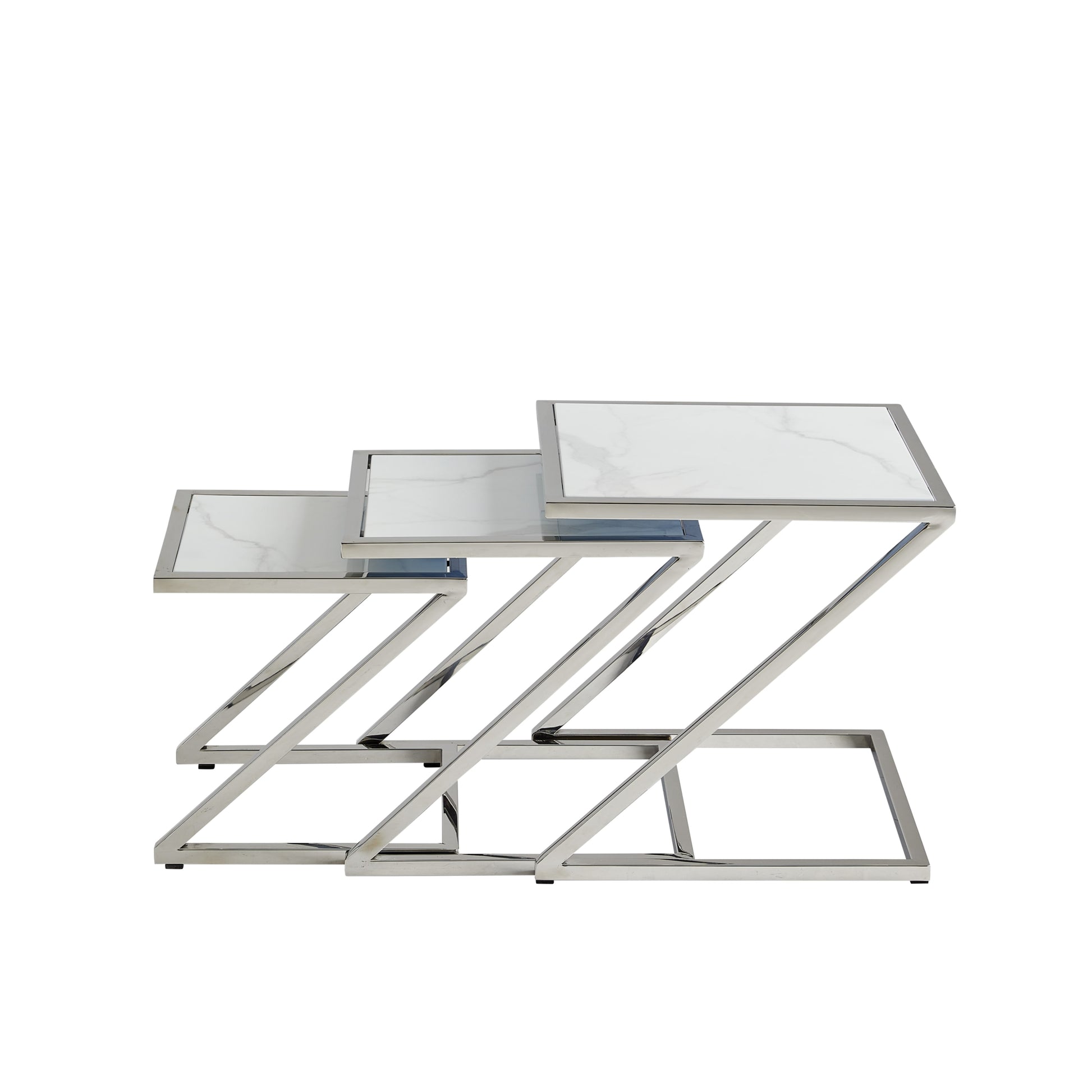 Guéridon Gigogne Chrome – Plateaux Marbre Blanc 45x45 / 40x40 / 35x35 cm