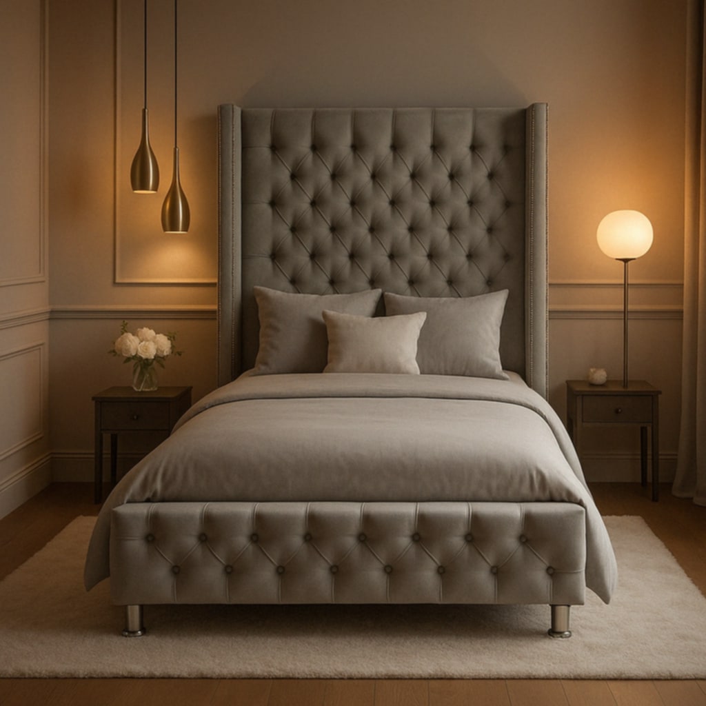 Lit Coffre Cloute Box – Velours Gris 90x190 cm