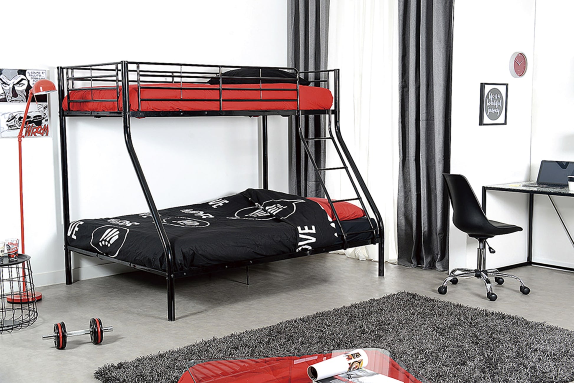 Lit Superposé Noir – 90x190 cm + 140x190 cm