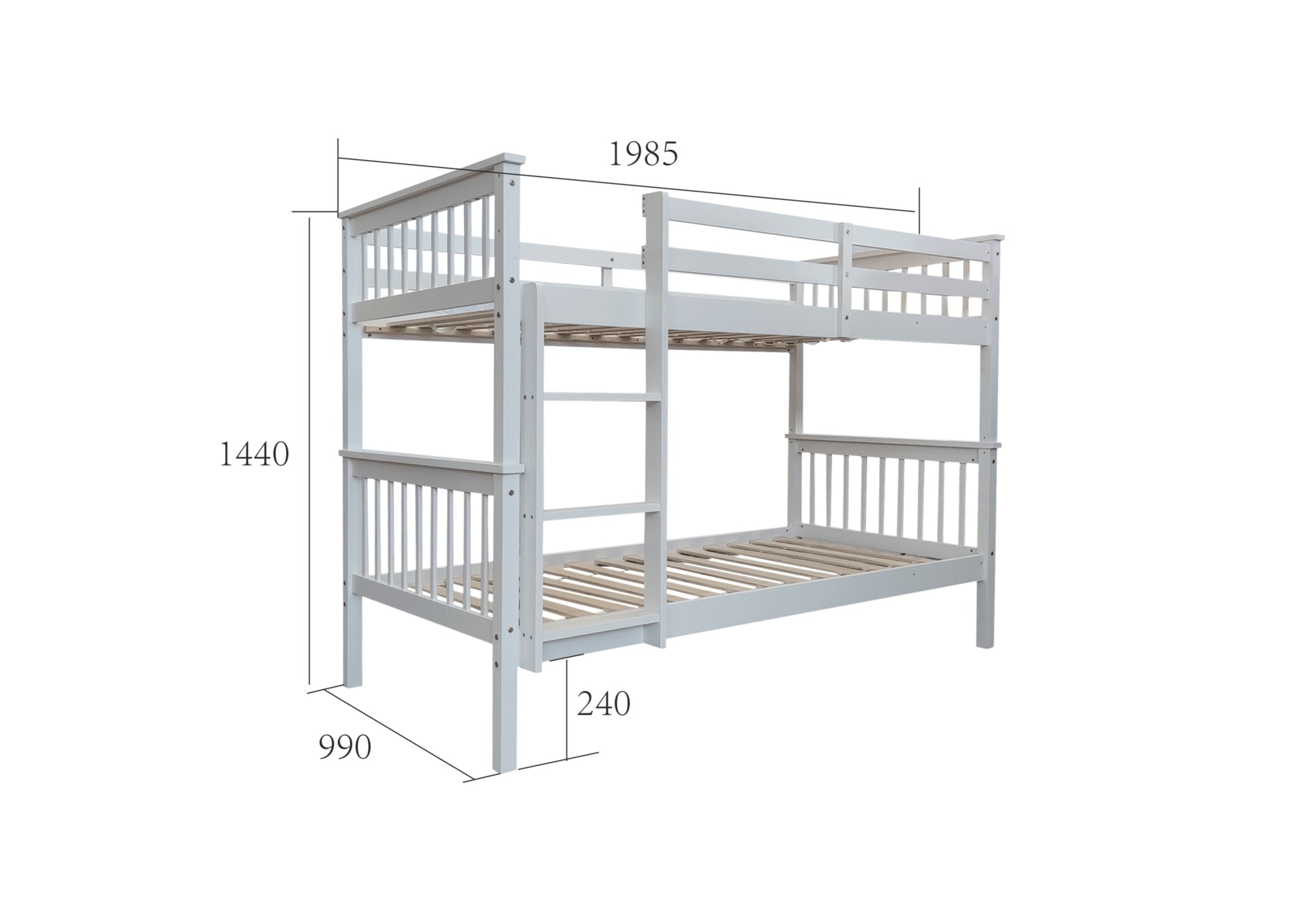 Lit superposé séparable Batna en bois blanc 1+1 90x190 cm – Pratique et évolutif