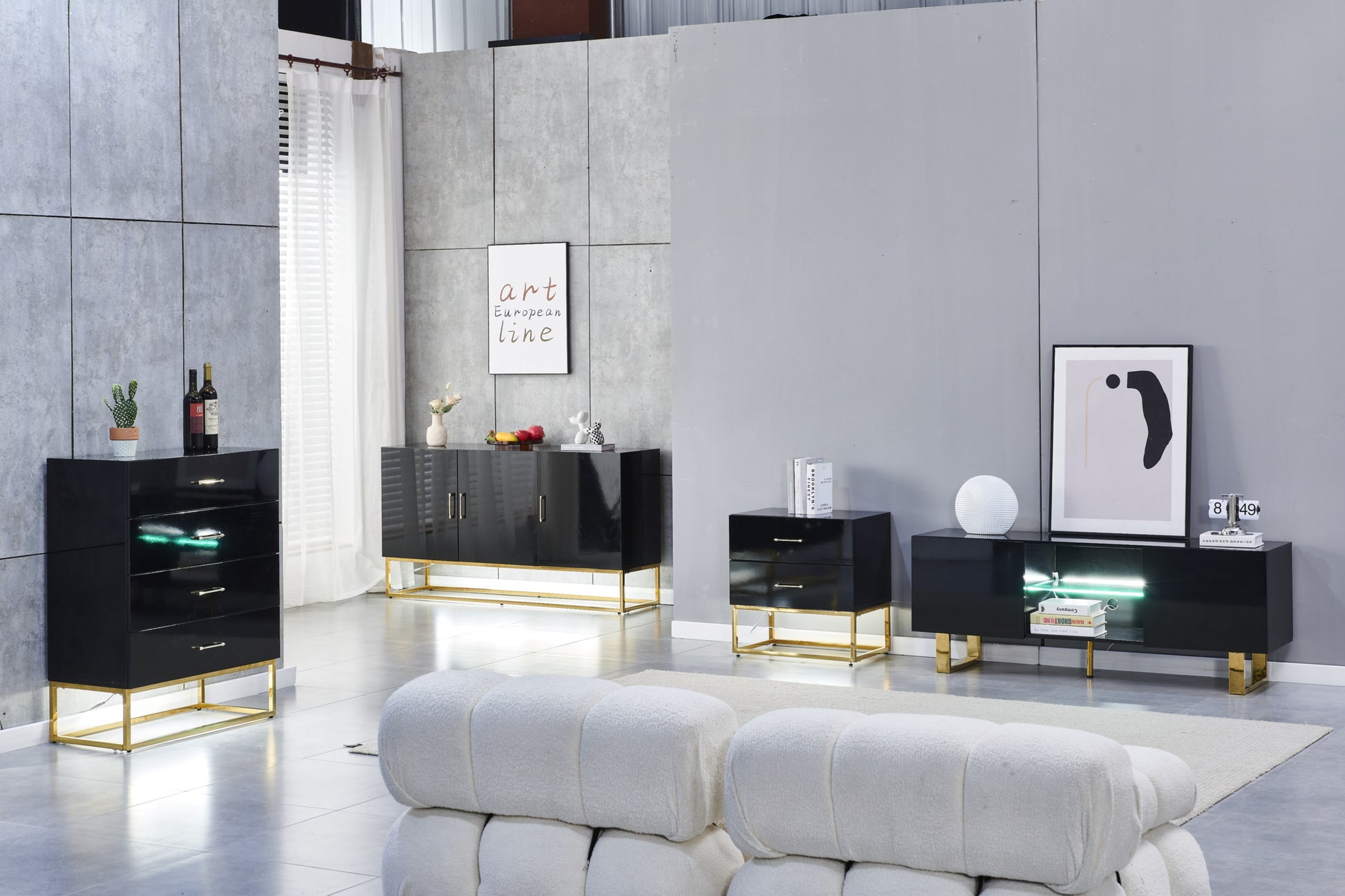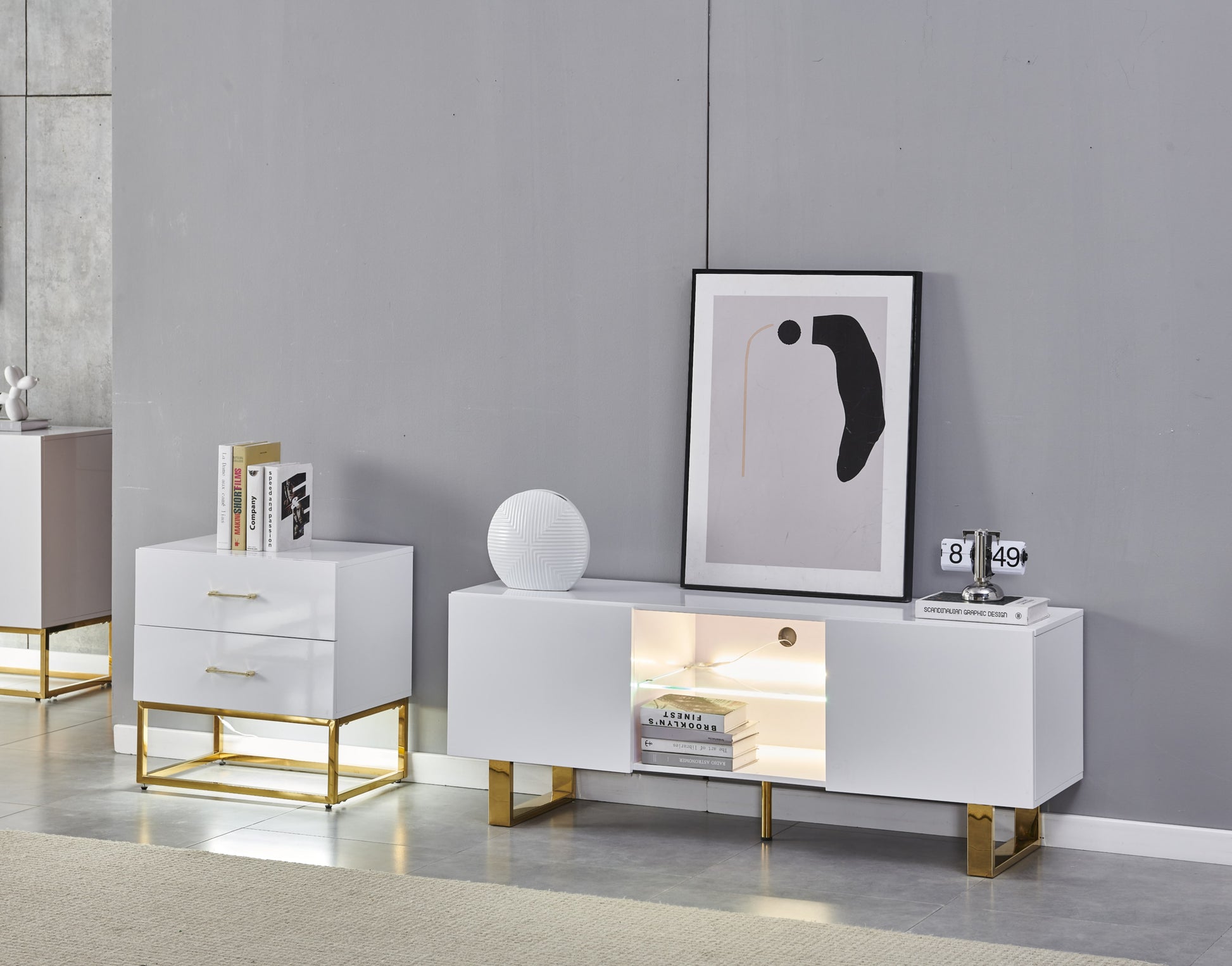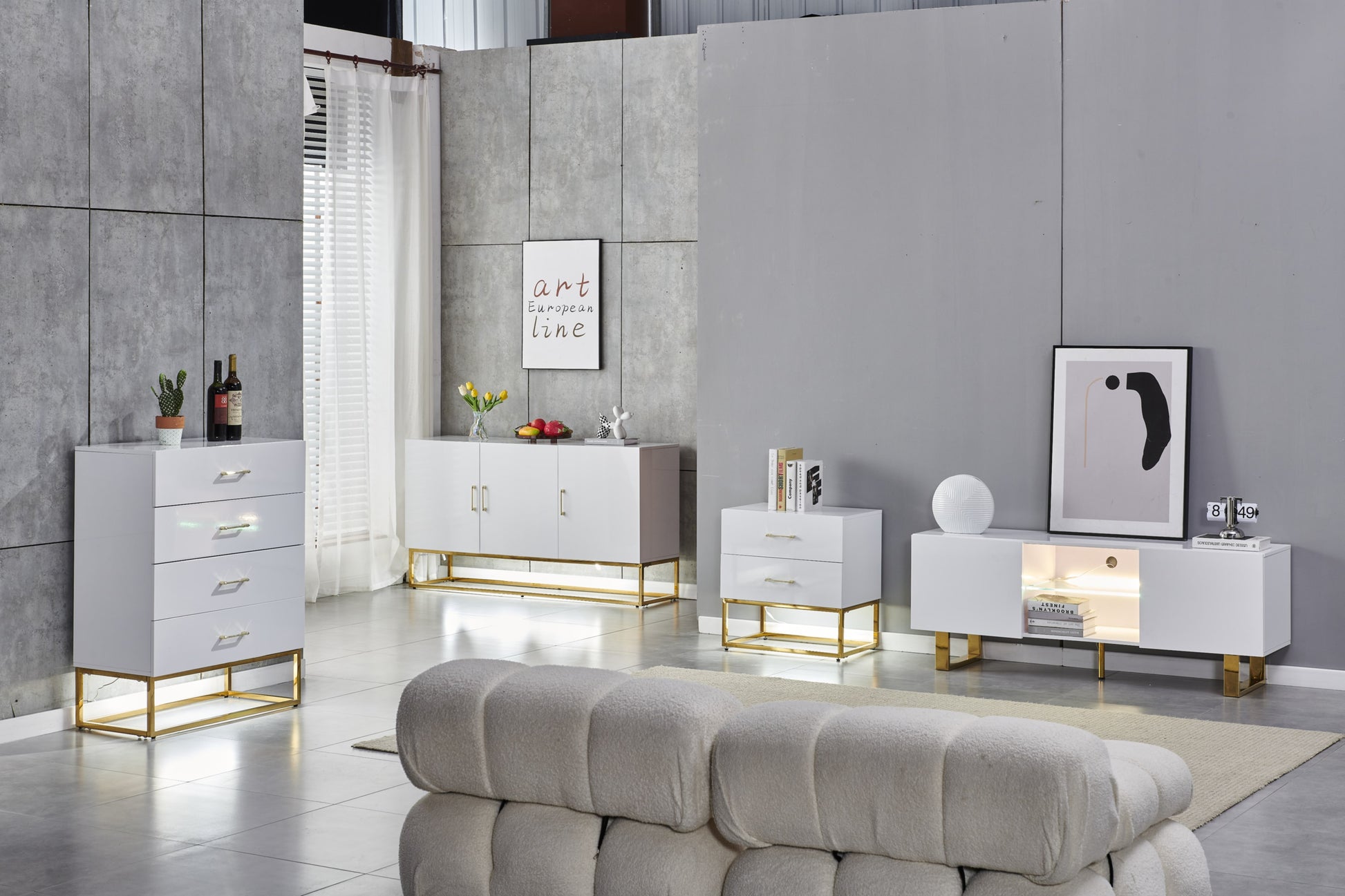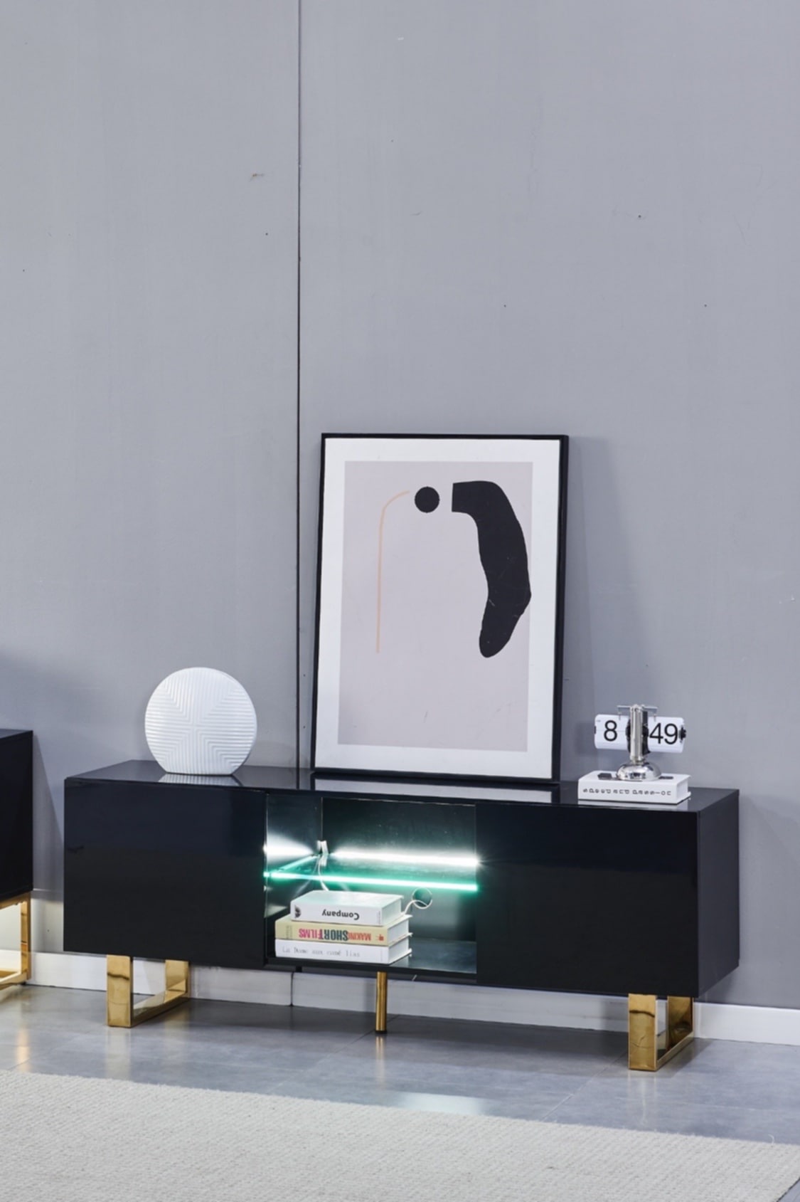 Meuble TV Alya – Bois Laqué avec Pieds Dorés