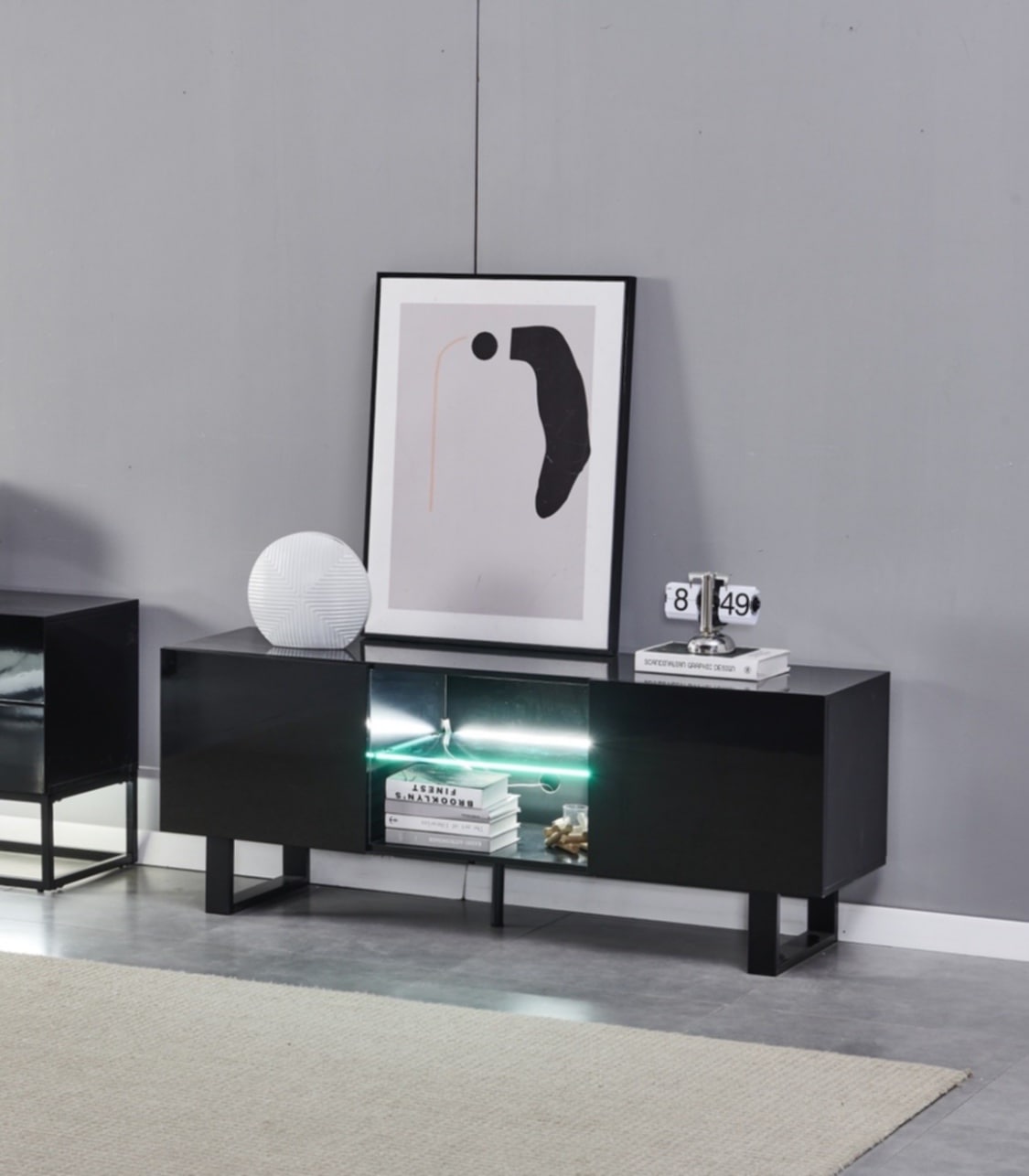 Meuble TV Alya – Bois Laqué avec Pieds Noirs