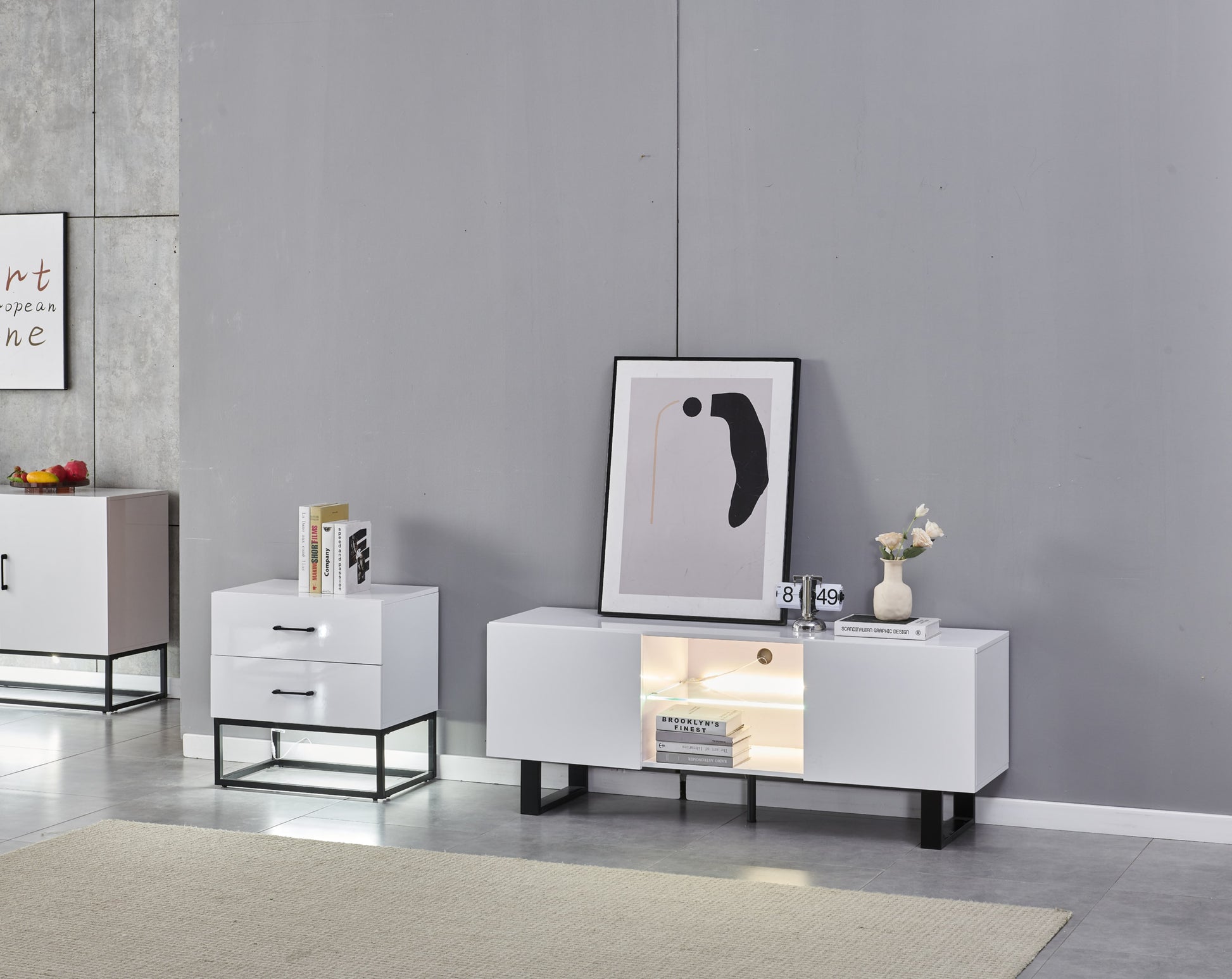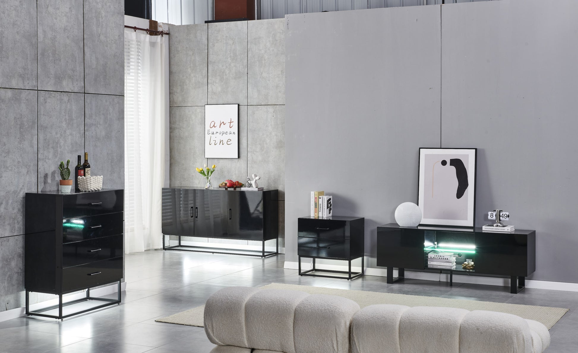 Apportez modernité et élégance à votre salon avec le Meuble TV Alya. Son bois laqué offre une finition lisse et brillante pour un style contemporain, tandis que ses pieds noirs ajoutent une touche de contraste et de sophistication. Conçu pour allier esthétique et praticité, il dispose d’un espace généreux pour votre télévision et vos accessoires, tout en maintenant votre salon organisé et élégant.