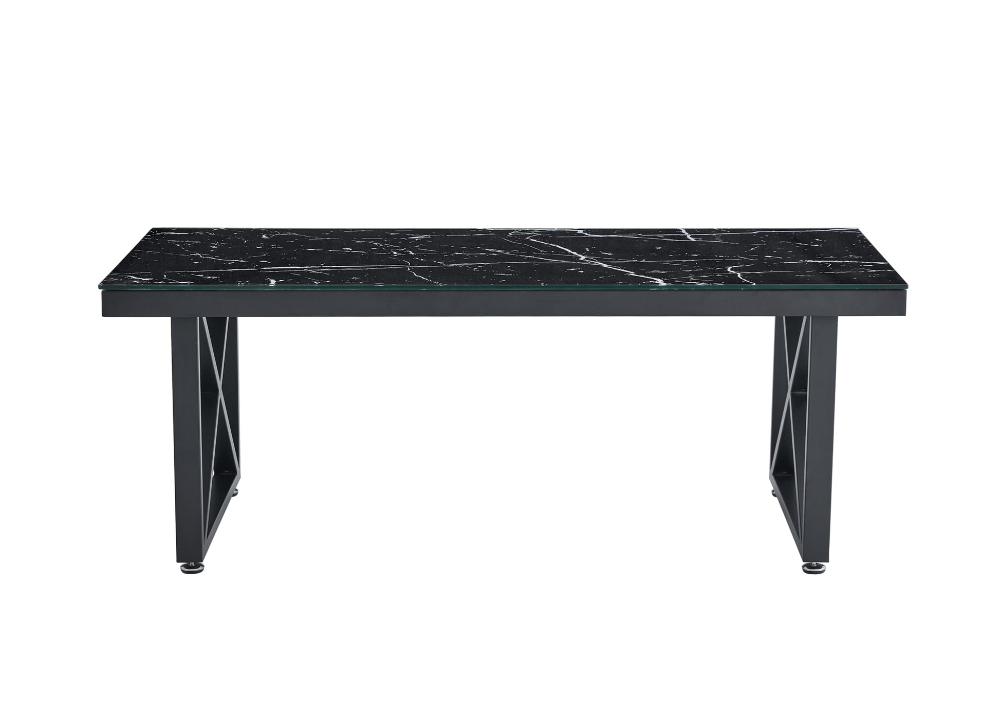Table Basse Levanto – Pieds Métal Noir & Plateau Verre Marbre Noir 120x60x45 cm