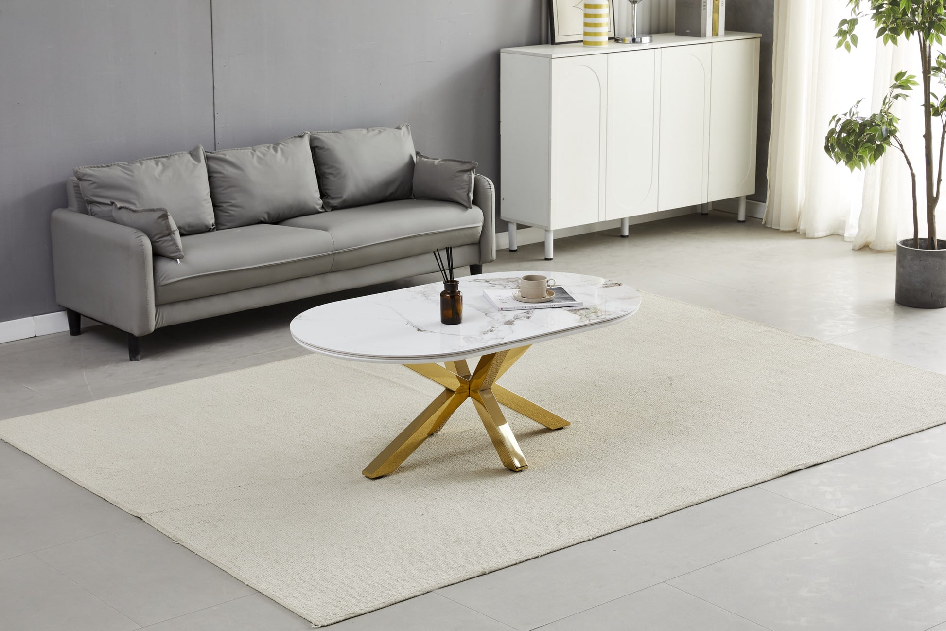 Table Basse Ophela – Plateau Céramique Marbre Beige Doré