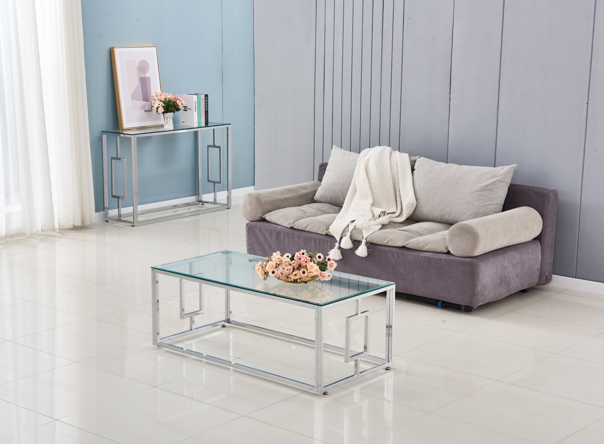 Table Basse Sophie – Chrome & Plateau Transparent 120x60x45 cm