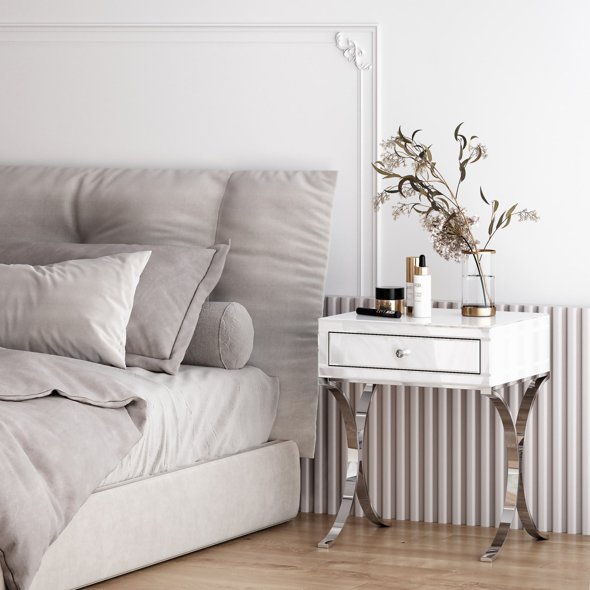 Alliant style et fonctionnalité, la table de chevet Cross est conçue pour compléter avec élégance votre chambre. Avec ses dimensions 50x40x60 cm, elle offre un espace pratique pour vos indispensables du quotidien tout en apportant une touche contemporaine grâce à son design soigné. Sa structure robuste garantit durabilité et stabilité, idéale pour une utilisation quotidienne.