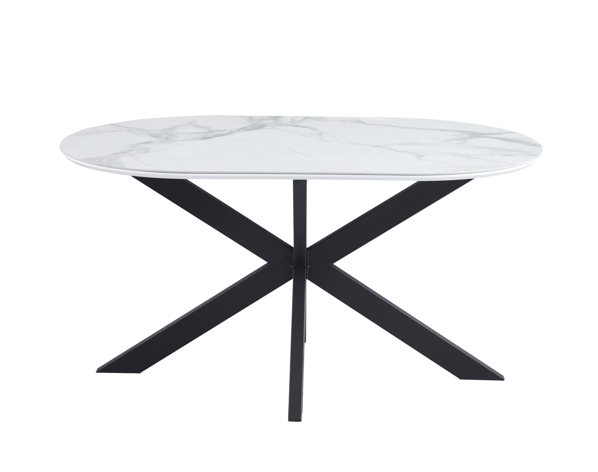 Table de repas Manon 150x90 cm – Pieds métal noir et plateau céramique effet marbre blanc