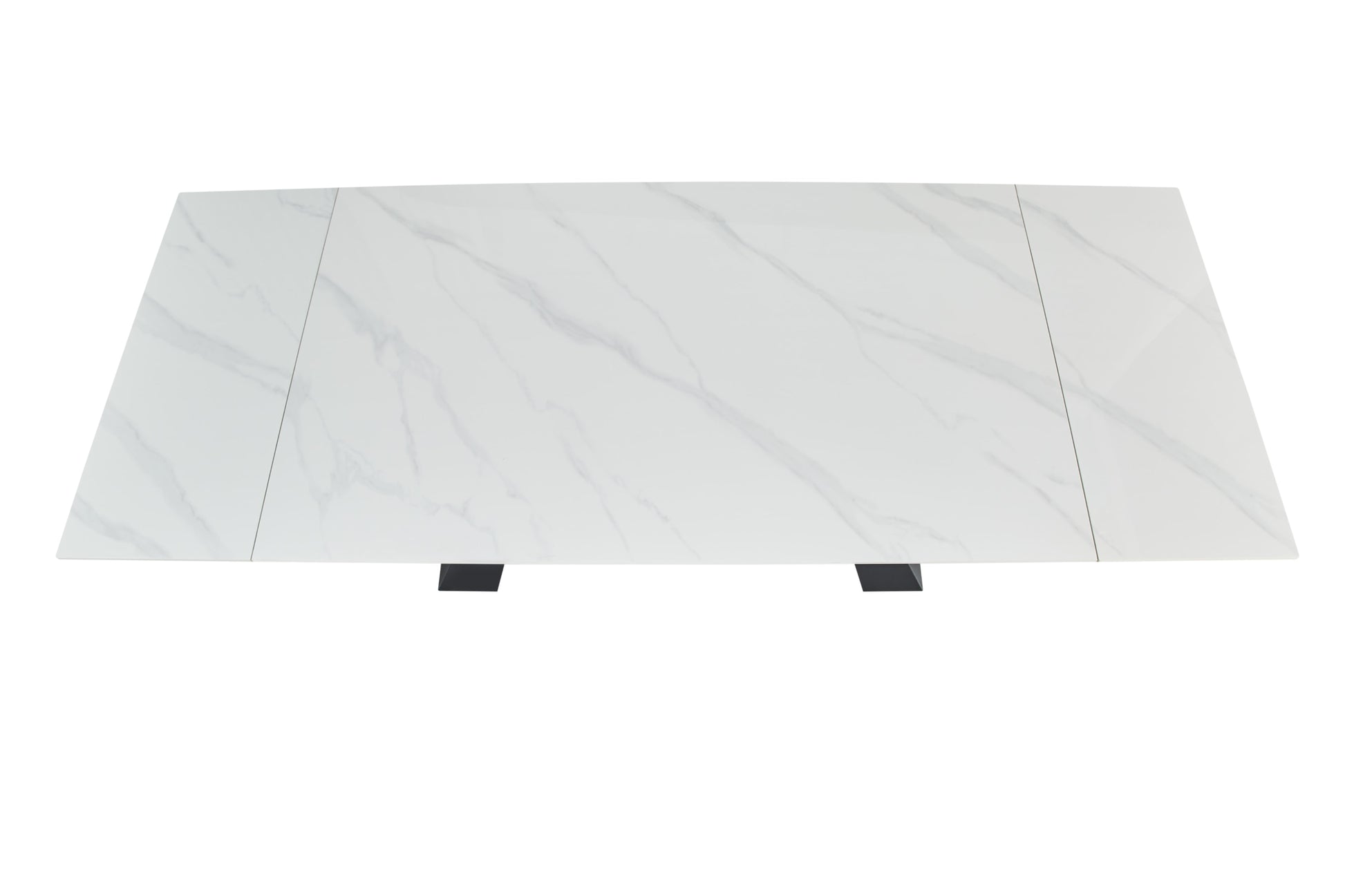 Table extensible Gulliver – Pieds métal noir et plateau céramique effet marbre blanc 160/240x90x75 cm