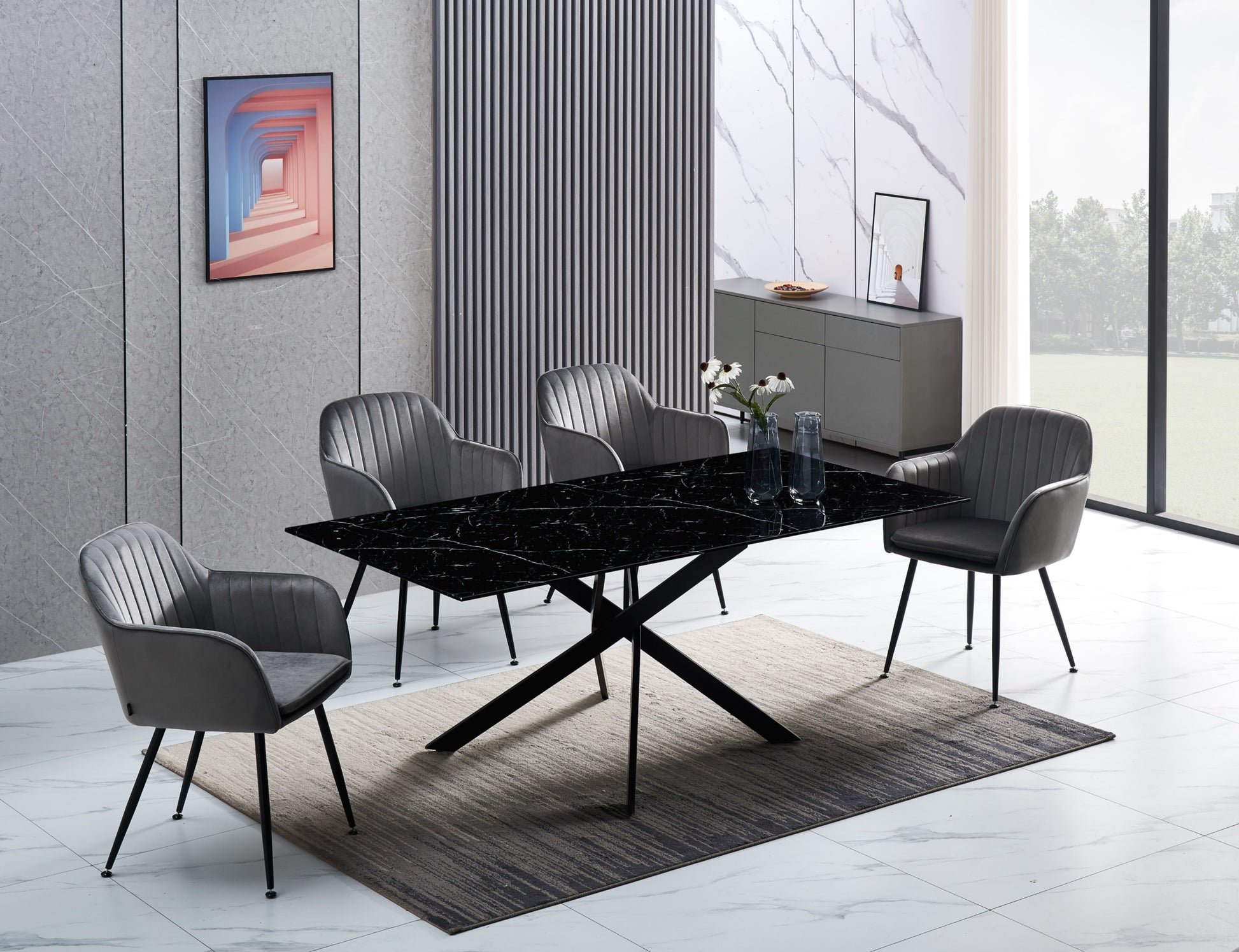 Table rectangulaire New Jessica – Pieds métal et plateau effet marbre noir 150x90x75 cm