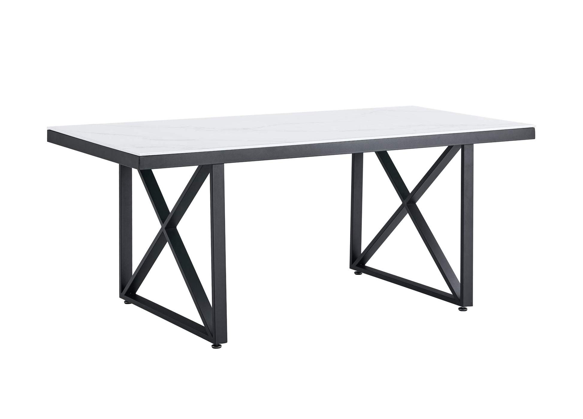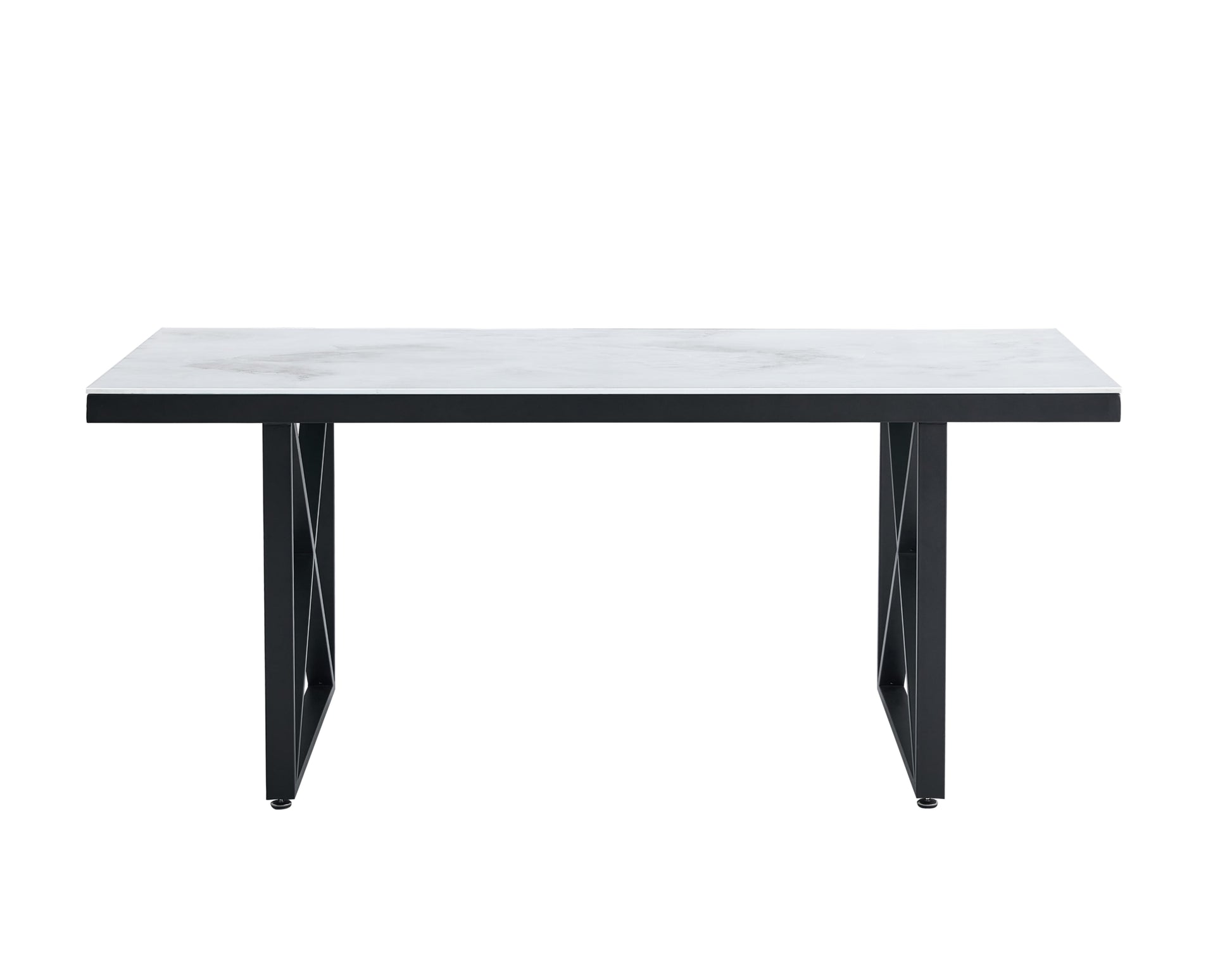 Table repas Levanto – Pieds métal noir et plateau effet marbre blanc 180x90x75 cm