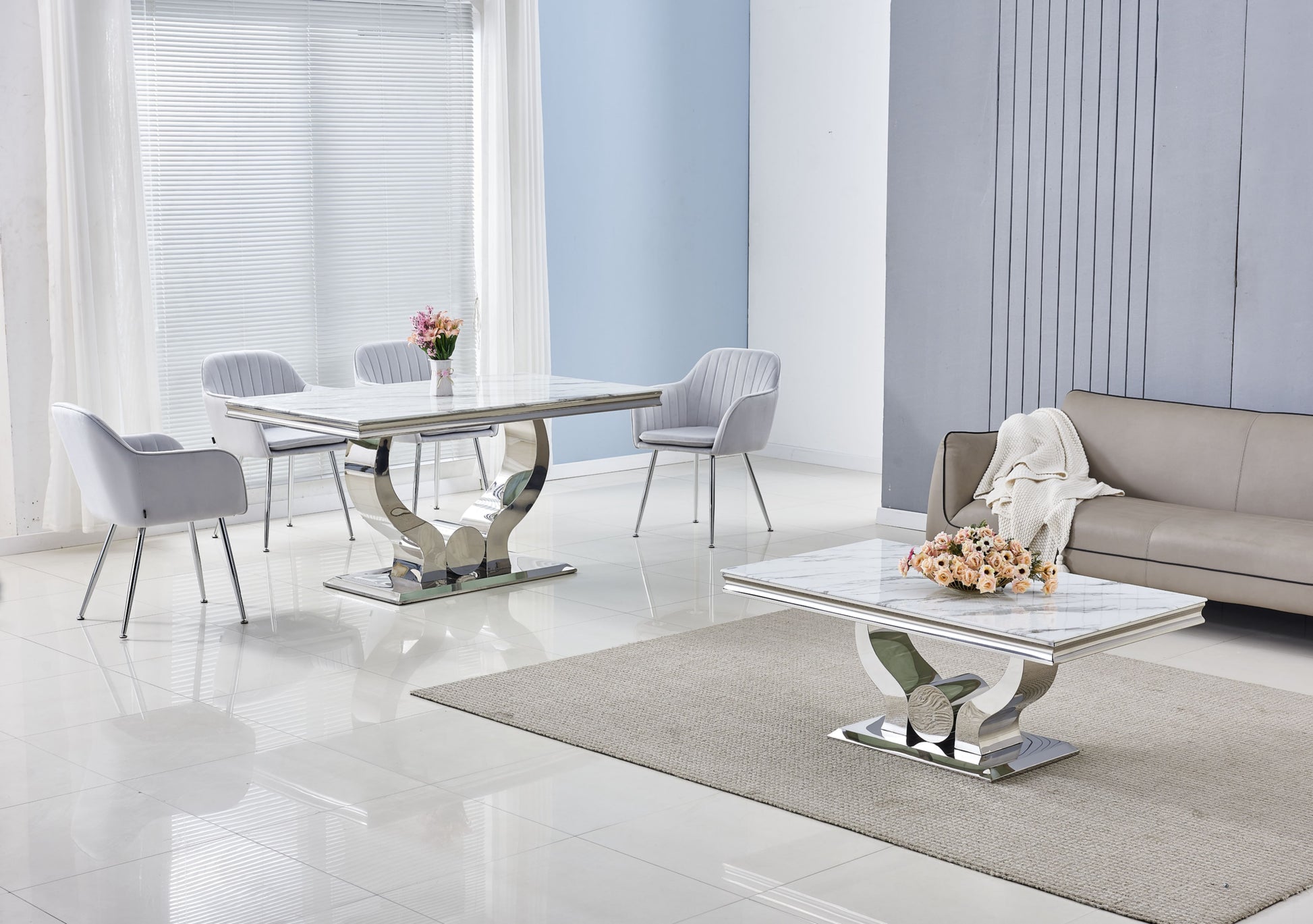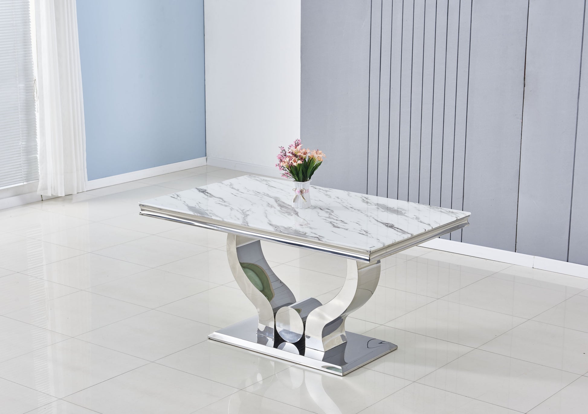 Table repas Trofy – Pieds et plateau effet marbre blanc 150x90x75 cm