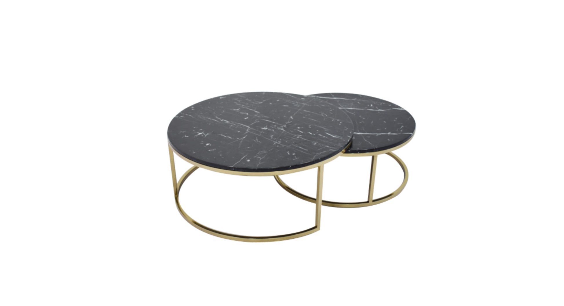 Tables Basses Gigognes Romro – Pieds Gold & Plateaux Marbre Noir 80x45 + 60x38 cm